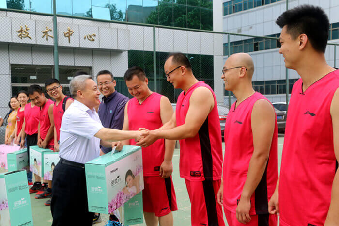 6月3日中午,长沙耐得丽科技有限公司2016年职工篮球比赛上演巅峰对决。经过激烈比拼,职能销售队以56:22战胜东方科技,分别获冠亚军;瑞创达以37:21战胜变压器队获得季军,首次组队参赛的变压器队获得第四名。集团公司工会主席、党委副书记李成山为获奖团队颁奖。